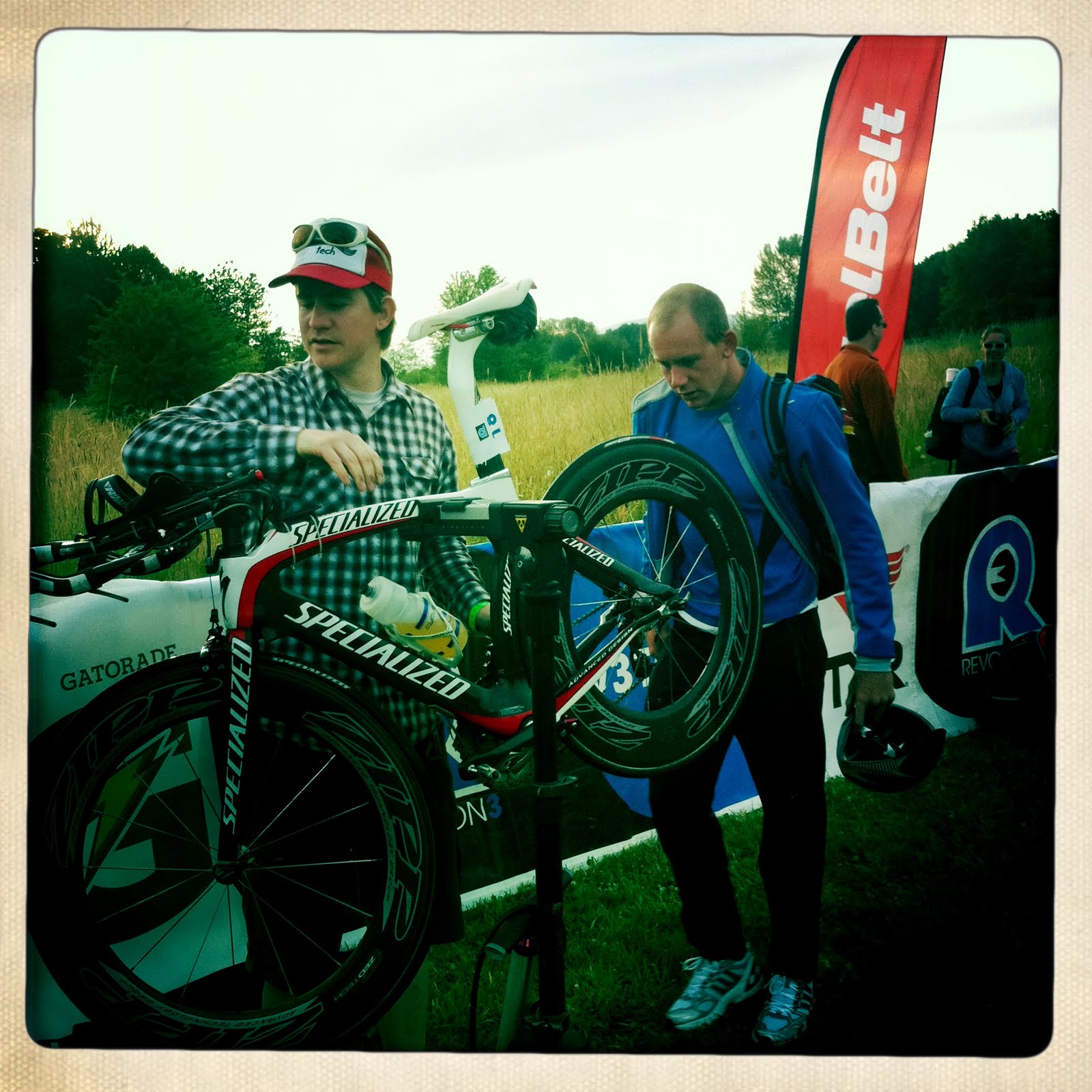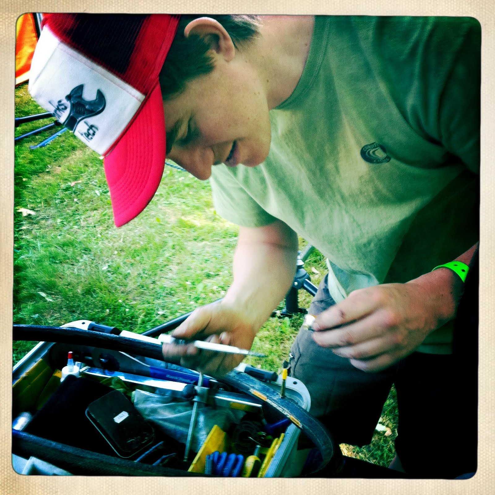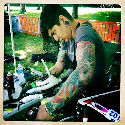Day two of my first experience being a race mechanic and it was rad… my head might explode. Today was neutral support so after last minute adjustments before the race started, we headed out in the car and drove up and down the course looking for people who were broke down on the side of the road. We would stop and fix their problem and they could continue their race. It was a half Ironman meaning we were out there for awhile. It was a lot of fun and I know it’s something I want to do again. Fo sho. It’s really exciting to do something that I love to do so much and in the same time help someone continue their race. You kind of form a bond with that person and you get to cheer them on every time you pass them. I think I’m in love….