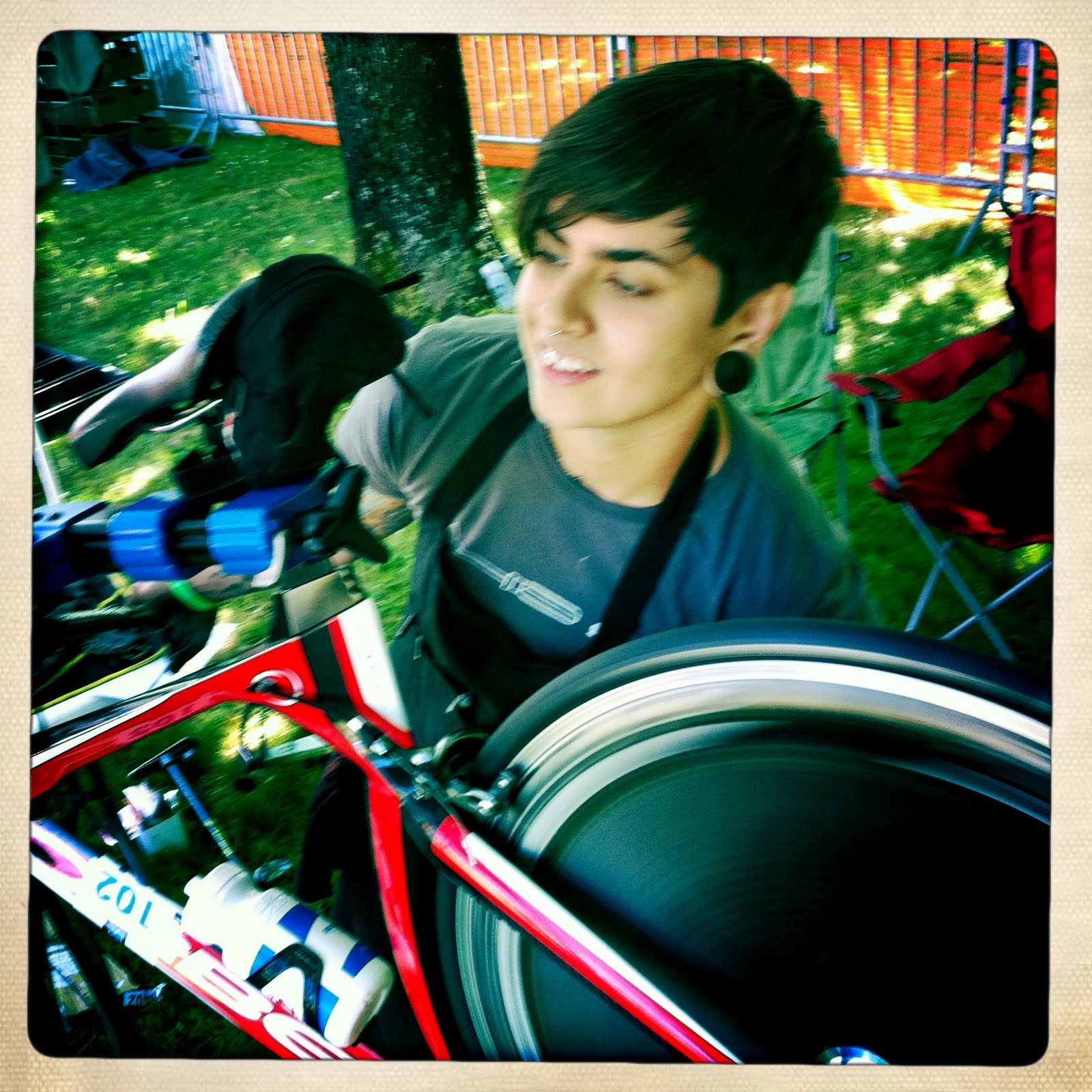 This weekend I will be at Blue Lake doing race support for the Rev3 Triathlon. Today we spent the day doing race tunes/check overs. Tomorrow we will be neutral support. It will be interesting to ride in a car while the race is right beside me. Then I get to jump out anytime there is a problem and do some quick fixin’. Uhhhh, yes…. It’s pretty bad ass. I was surprised to see how many people traveled far for this race. I am not familiar with Tri races so I didn’t really know this was a big deal. Who knew? I wasn’t the only one from our shops who went to represent. I brought the newest member to our family, Muck. He is wrenching over at our sister shop, Fat Tire Farm.Muck has had a lot of experience as a race mechanic and does the Hawaii Ironman every year, so it was great to have him to work with. My friend, Jason, also joined us and checked in bikes as they came and handled the general order of the repairs Muck and I had.